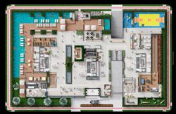 Em seu interior, o empreendimento foi projetado para proporcionar uma agradável e completa experiência de vida a quem busca por bem-estar e tranquilidade junto à natureza. ≈ Aprox. 19.285m2 de área construída ≈ 03 torres com 72 apartamentos e 12 coberturas ≈