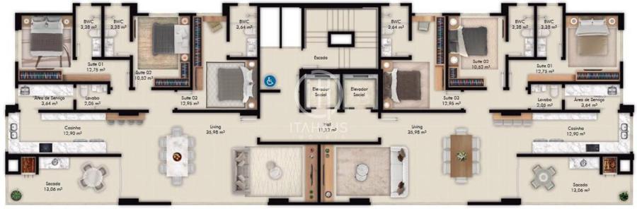 *todos os ambientes de área comum entregues mobiliados, decorados e equipados