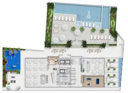 Os 2.000m² de área de lazer serão distribuídos em dois pavimentos proporcionando mais de 20 opções de entretenimento, com destaque para a ampla piscina com borda infinita.