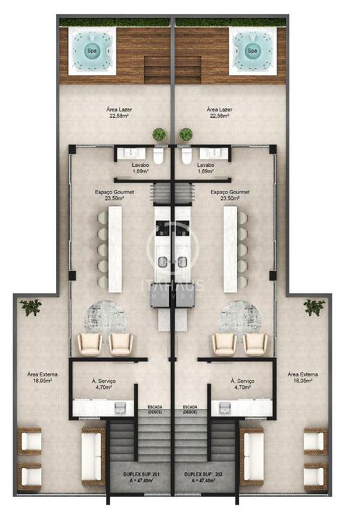 Terraço com área gourmet com churrasqueira
